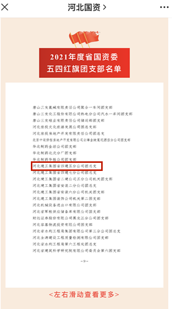 5月上旬,喜訊傳來(lái)!五分公司團總支受到河北省國資委團委、省國資委青聯(lián)聯(lián)合表彰,被評為“2021年度河北省國資委五四紅旗團支部”。