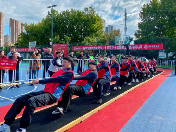 “加油,加油……”隨著(zhù)一陣陣此起彼伏的吶喊,省直工會(huì )組織的“移動(dòng)杯”拔河比賽于10月21日在石家莊高鐵片區中央綠色體育公園正式開(kāi)賽,公司工會(huì )選拔出14名身強力壯的職工組隊參加了比賽,在54支參賽隊伍中奪得第八名的好成績(jì)。