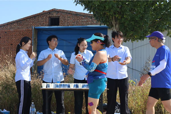 賽道上,秩序維護組的志愿者們化身“最熱情的指引者”??吹竭x手因路線(xiàn)不熟悉放慢腳步,立刻快步上前微笑指引,同時(shí)大聲喊出“加油!前方500米補給站”;遇到年長(cháng)選手體力不支,主動(dòng)遞上溫水,輕聲叮囑“調整呼吸,堅持就是勝利”。補給站內,志愿者們更是以“秒級響應”服務(wù)每一位選手。左手遞水杯、右手遞紙巾,動(dòng)作連貫嫻熟,還不忘根據選手狀態(tài)送上鼓勵:“您跑得真棒,加油!”一句句溫暖的話(huà)語(yǔ)、一個(gè)個(gè)有力的手勢,讓選手們瞬間充滿(mǎn)力量?!奥?tīng)到志愿者喊‘加油’的那一刻,感覺(jué)腿上又有了勁,他們比我還在意我的成績(jì),特別感動(dòng)?!币幻状螀⒓玉R拉松的年輕選手笑著(zhù)說(shuō)。