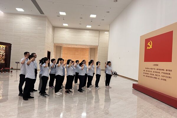 參觀(guān)完畢,大家來(lái)到展覽館宣誓廳,重溫入黨誓詞。面對鮮紅的黨旗,全體黨員高舉右拳,用鏗鏘有力的誓言表達了“不忘初心永跟黨走,牢記使命砥礪前行”的堅定決心。