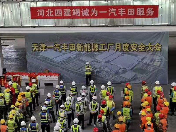 5月27日上午,由業(yè)主天津一汽豐田汽車(chē)項目部主辦的“新能源工廠(chǎng)建設項目月度安全大會(huì )”,在天津分公司施工的樹(shù)脂車(chē)間現場(chǎng)召開(kāi)。中建、中冶、浙江寶業(yè)、江蘇江都等23家參建單位,1650人參加了大會(huì )。