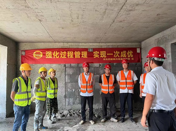 “為了強化全員質(zhì)量意識,弘揚工匠精神,促進(jìn)操作技能、管理技能提升,現開(kāi)展質(zhì)量月技能競賽……”項目主管師蔡昭作為總裁判作了賽前動(dòng)員,宣布了比賽內容、規則、程序、評分標準等,今年新入職職工、部分作業(yè)工人及工長(cháng)觀(guān)賽。