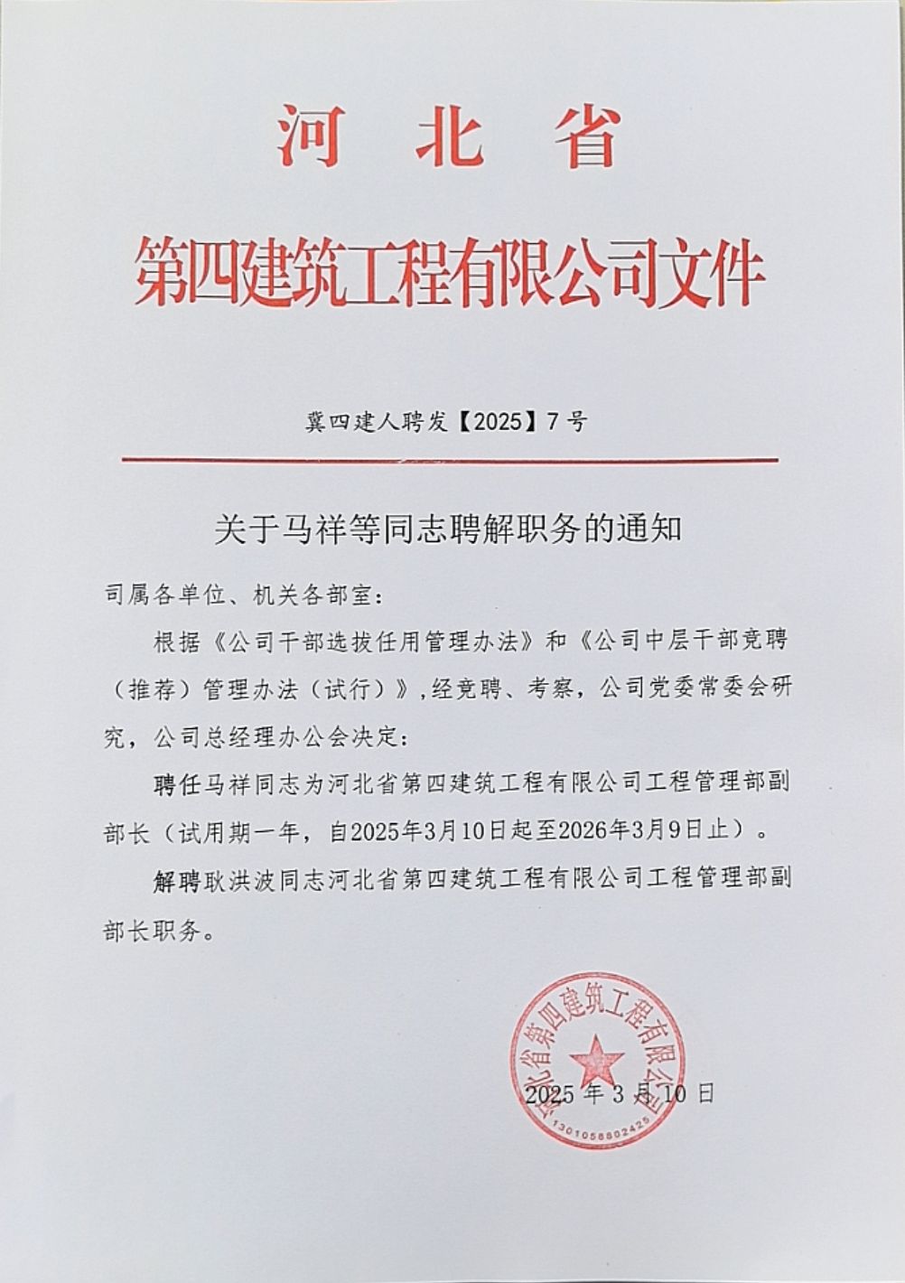 關(guān)于馬祥等同志聘解職務(wù)的通知